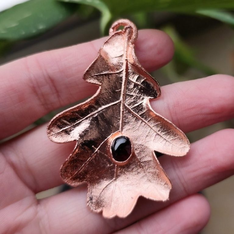 Ein unscheinbares Blatt vom Wegesrand wird so zu einem kupfernen Schmuckstück, ein Stück Natur zum Mitnehmen.